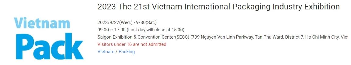 2023/9/27(周三)- 9/30(周六) 09:00 ~ 17:00 (最后一天15:00结束) 西贡展览会议中心(SECC)(越南胡志明市第七区新富坊阮文灵大道 799 号)
